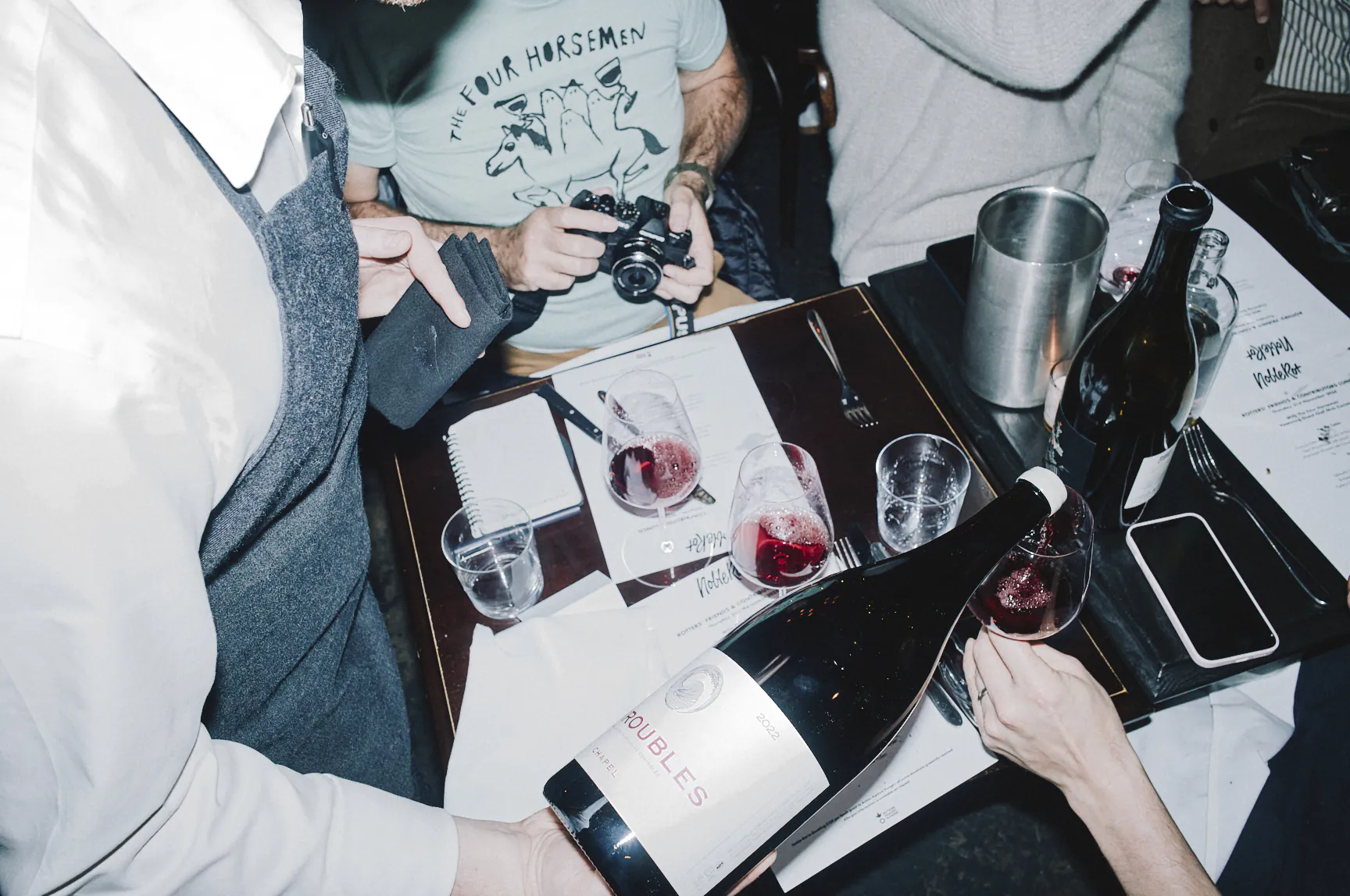 The day begins early: the wine bar’s tables are replaced by upturned barrels, heaters are positioned on pavement, and by midday the restaurant opens for our ‘Friends & Contributors Lunch’—a chance for our magazine writers and winemakers to break bread before the 4pm free tasting kicks off outside. Both the lunch – and the evening dinner service, which is open to the public – is cooked by a guest chef and/or restaurant.